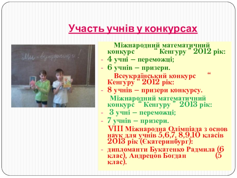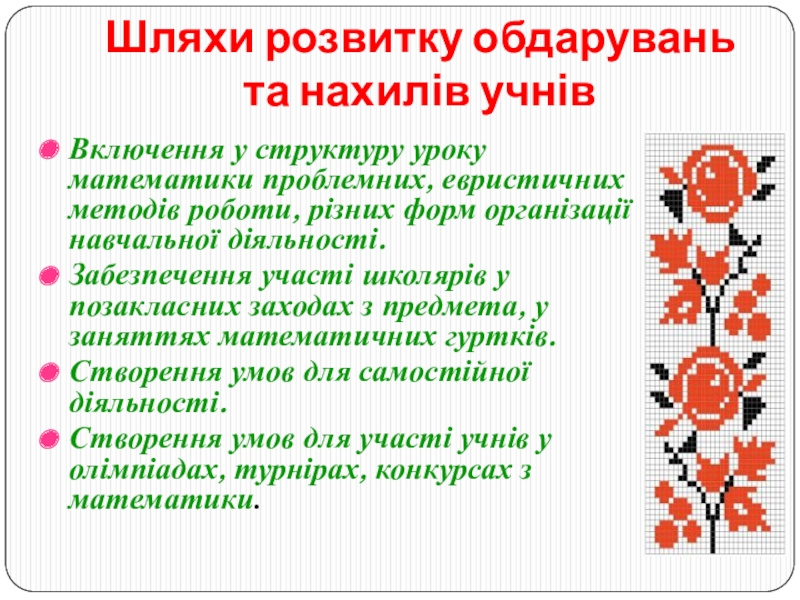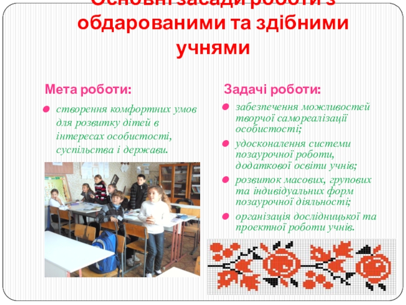 залучення обдарованих учнів до участі у житті школи.