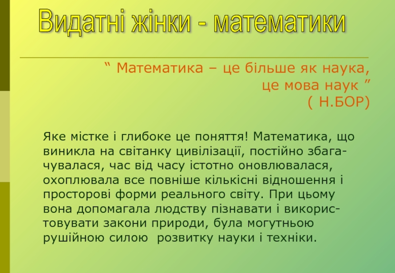 “ Математика – це більше як наука, це мова наук ”