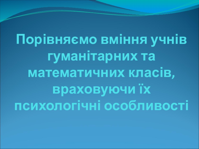 Слайд 9Порівняємо вміння учнів гуманітарних та математичних класів, враховуючи їх психологічні особливості