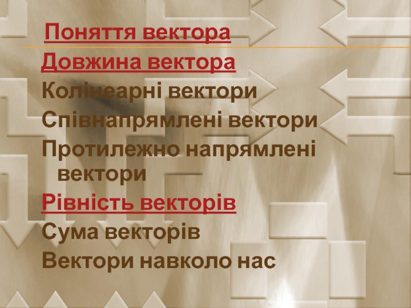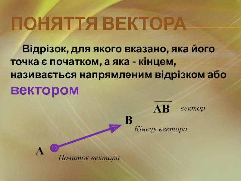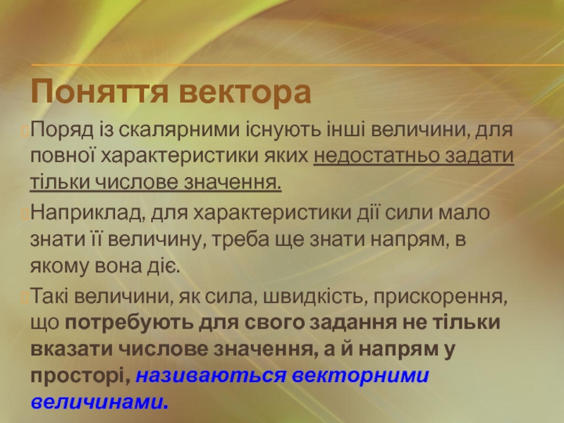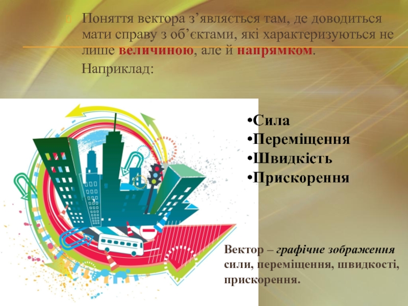Вектор – графічне зображення сили, переміщення, швидкості, прискорення.