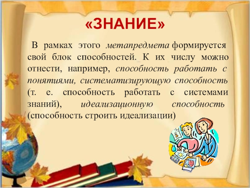 В рамках этого метапредмета формируется свой блок способностей. К их числу