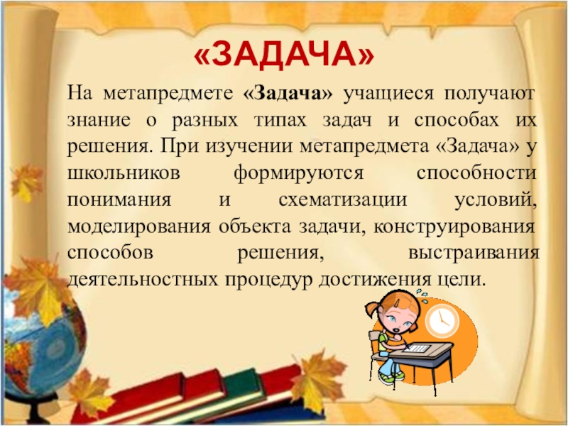 На метапредмете «Задача» учащиеся получают знание о разных типах задач и