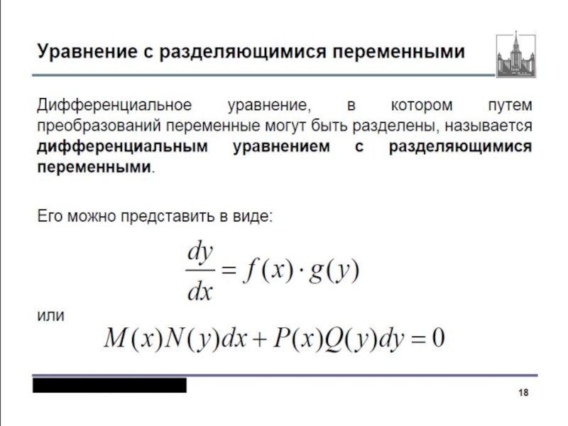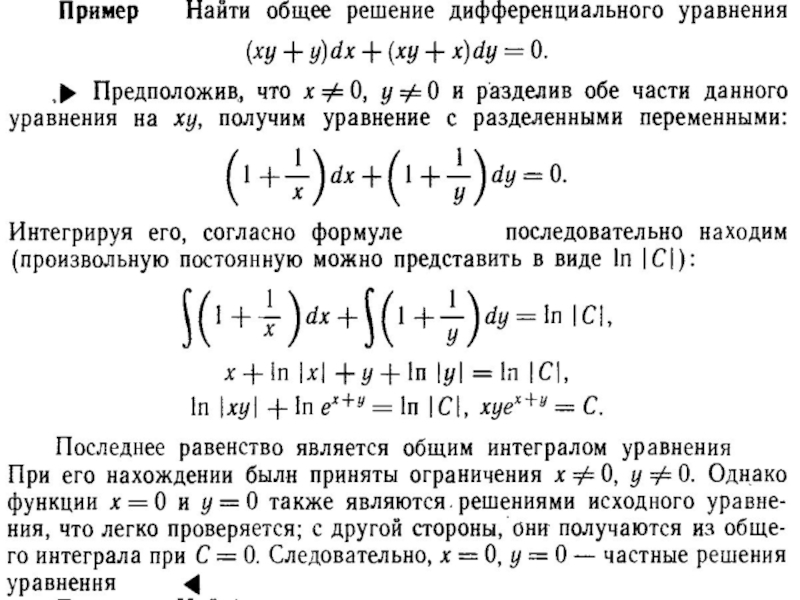 2. Уравнения с разделяющимися переменными: