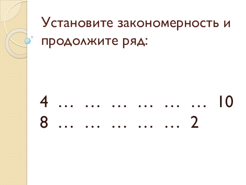 Установите закономерность и продолжите ряд:4 … … … … … … 108 … … … … … 2