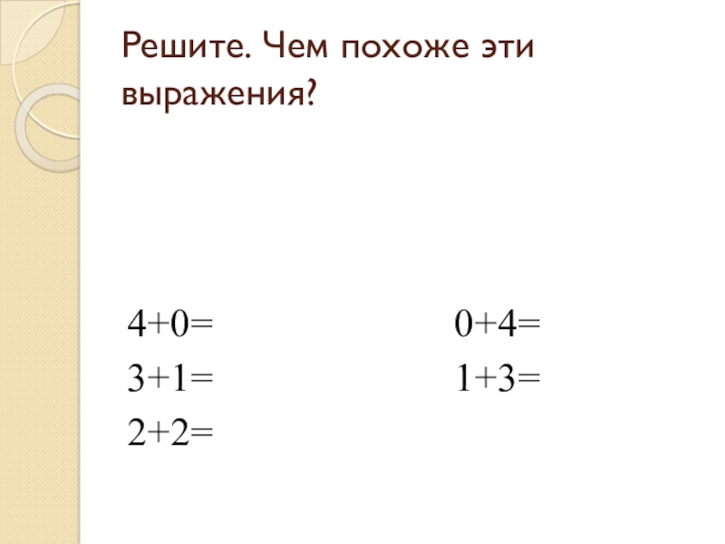 Решите. Чем похоже эти выражения?4+0=            0+4=3+1=