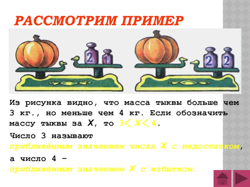 но меньше чем 4 кг. Если обозначить массу тыквы за Х, то 3 Х 4.