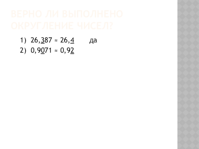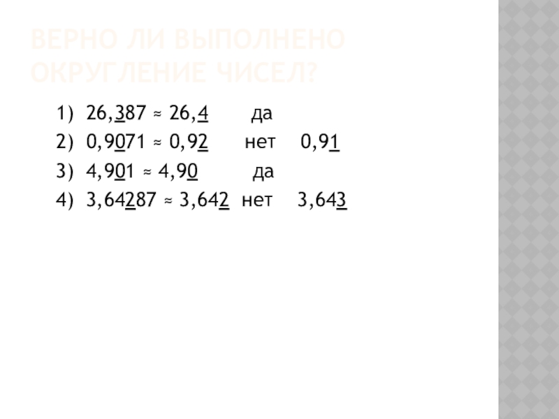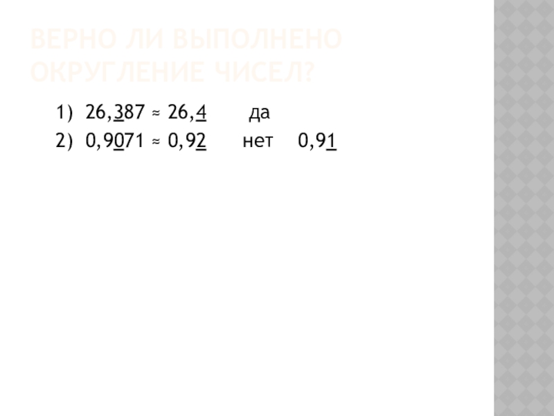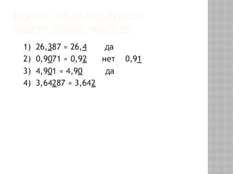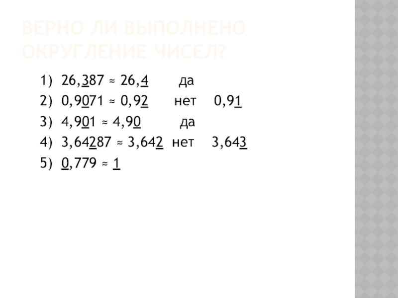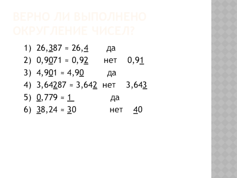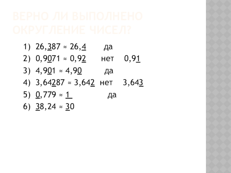 Слайд 12Верно ли выполнено округление чисел?