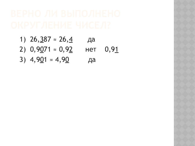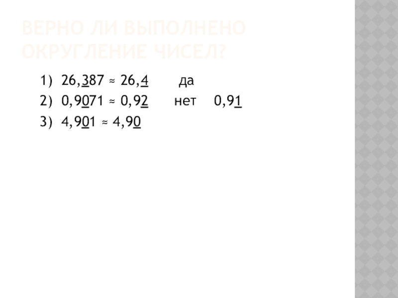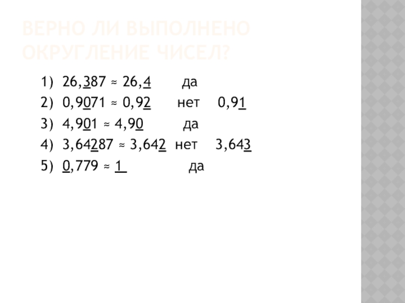 Слайд 11Верно ли выполнено округление чисел?