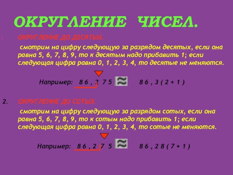 Слайд 8ОКРУГЛЕНИЕ ЧИСЕЛ.