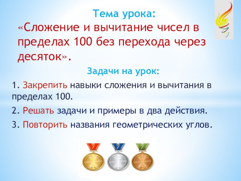 «Сложение и вычитание чисел в пределах 100 без перехода через десяток».