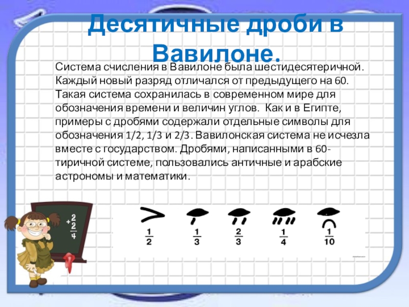 Слайд 5Десятичные дроби в Вавилоне.