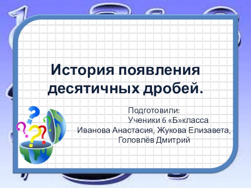 Слайд 1История появления десятичных дробей.