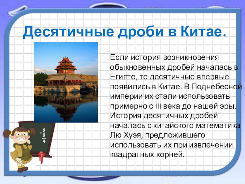 Слайд 6Десятичные дроби в Китае.