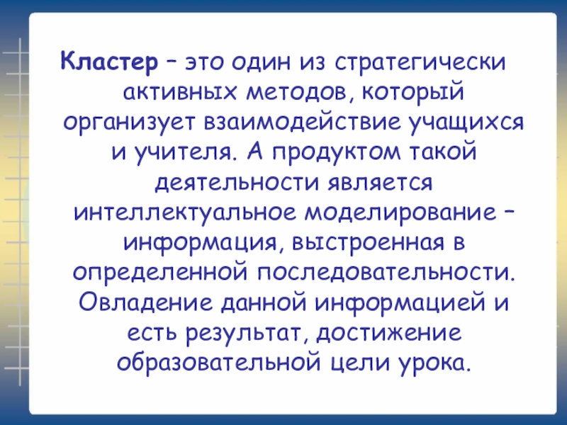 Слайд 6Кластер – это один из стратегически активных методов, который организует взаимодействие