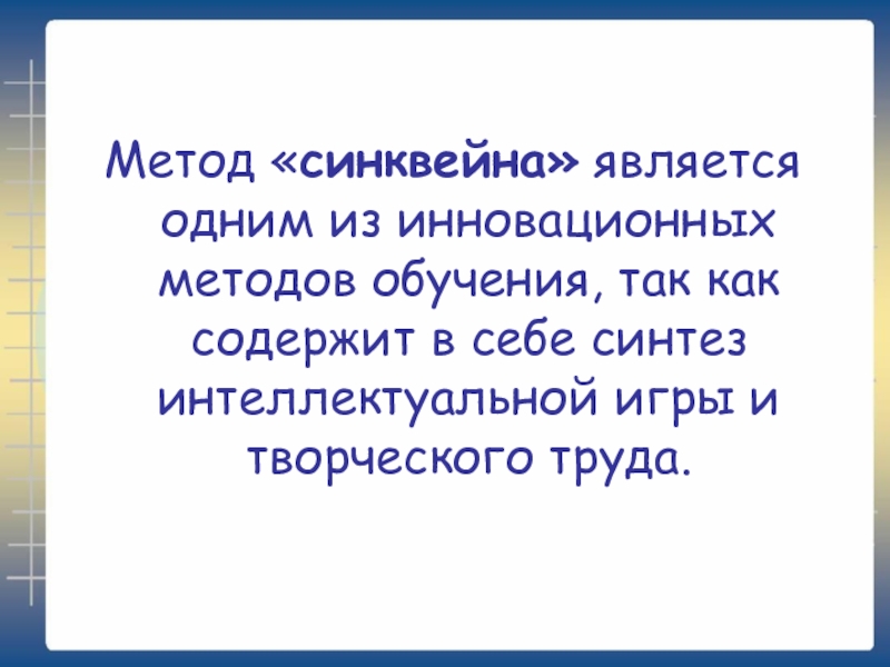 Слайд 10Метод «синквейна» является одним из инновационных методов обучения, так как содержит