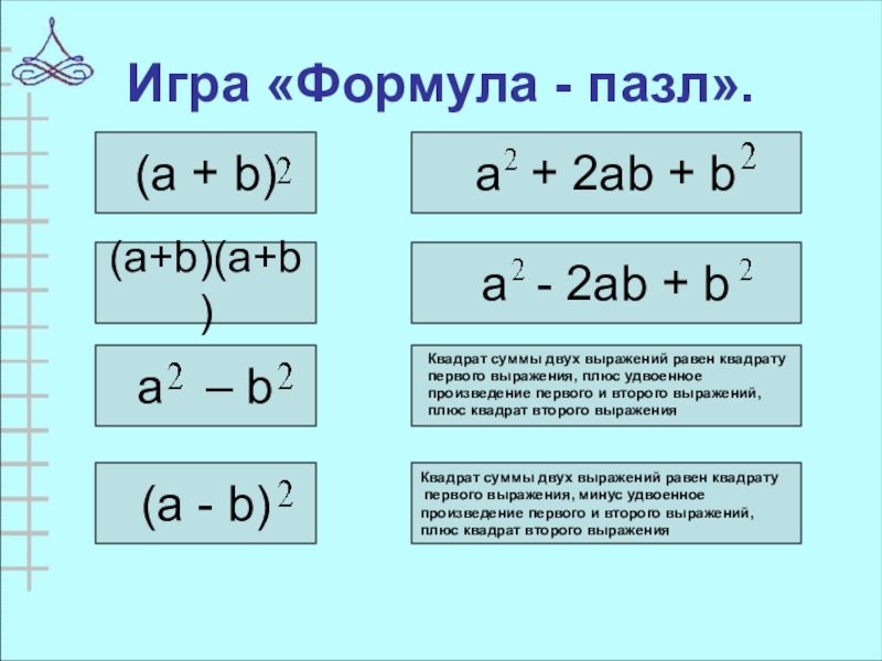 Слайд 24Игра «Формула - пазл».