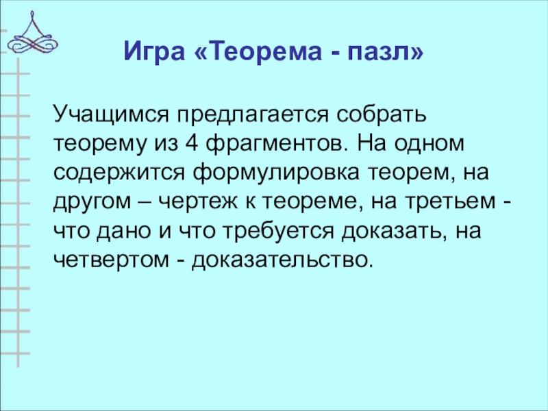 Слайд 26Игра «Теорема - пазл»