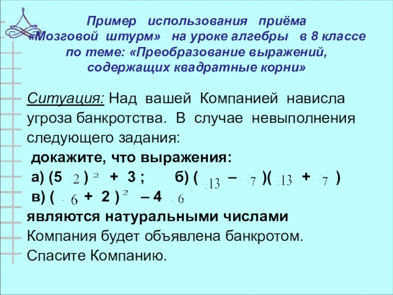 «Мозговой штурм» на уроке алгебры в 8 классе