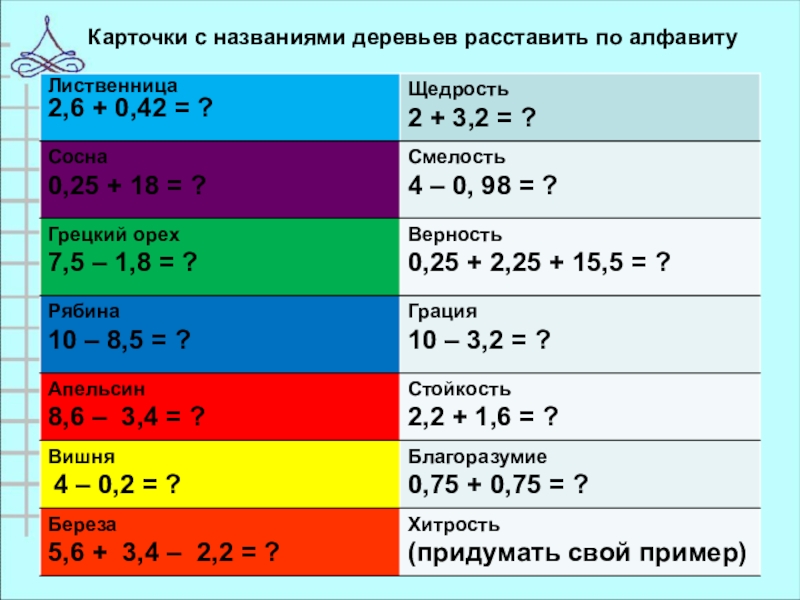 - встаньте, чья сумма равна нулю (за одной партой);