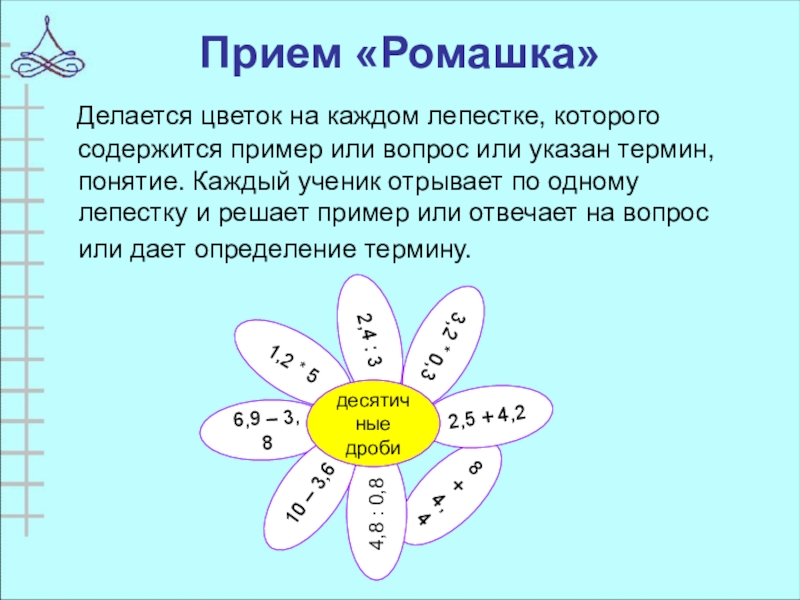 Слайд 23Прием «Ромашка»