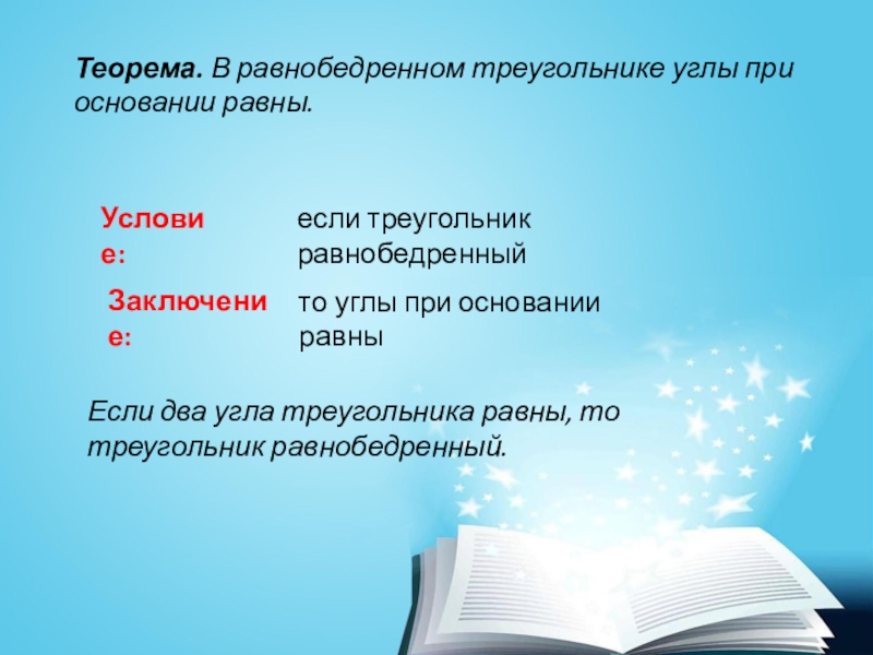 Если два угла треугольника равны, то треугольник равнобедренный.
