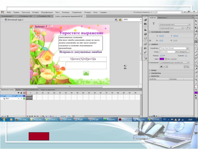 Презентация, доклад на тему Применение Flash- технологий на уроках математики