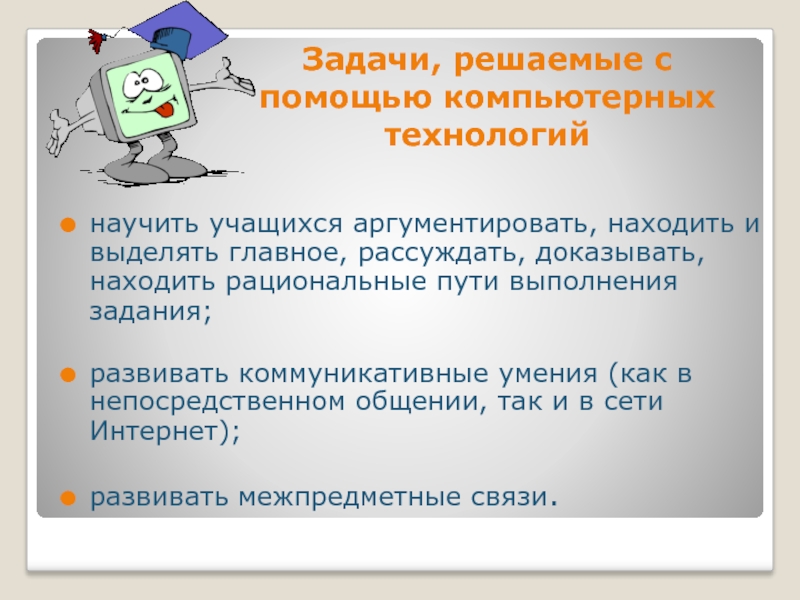 научить учащихся аргументировать, находить и выделять главное, рассуждать, доказывать, находить рациональные пути выполнения задания;