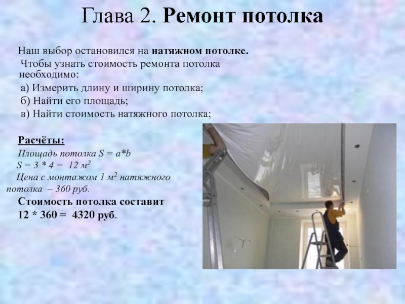 Слайд 5Глава 2. Ремонт потолка
