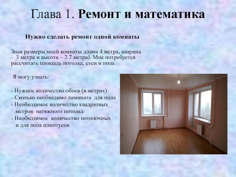 Слайд 4Глава 1. Ремонт и математика