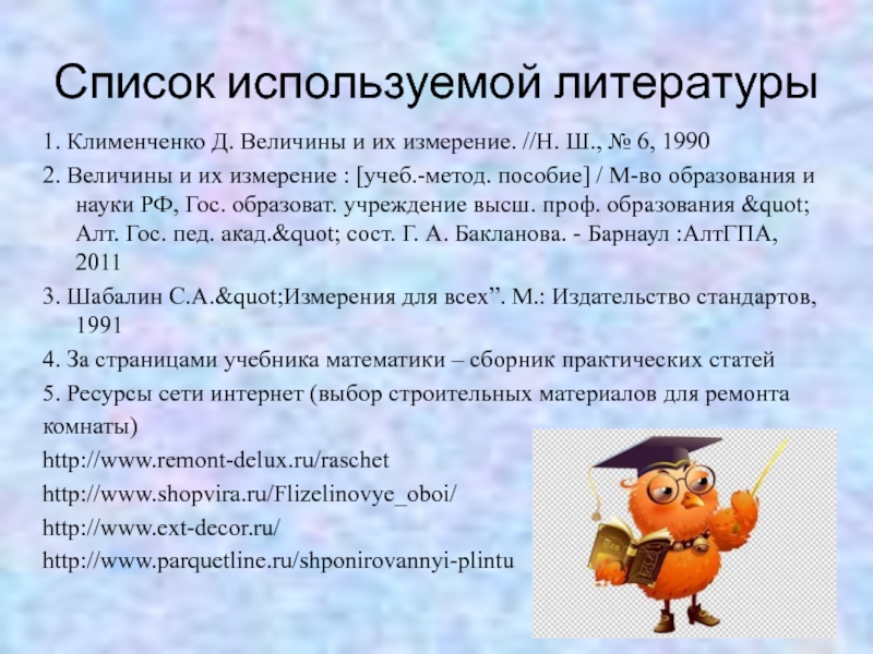 1. Клименченко Д. Величины и их измерение. //Н.