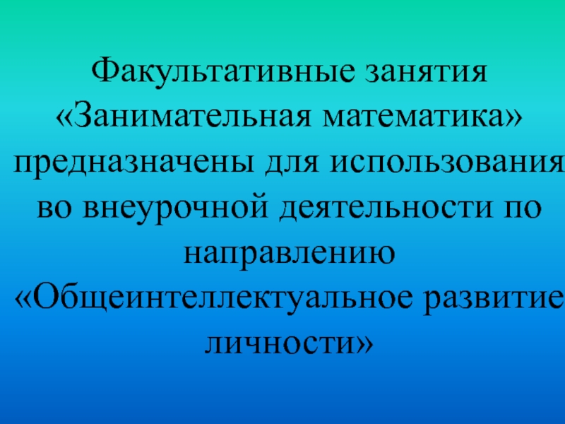 Слайд 13Факультативные занятия «Занимательная математика» предназначены для использования во внеурочной деятельности по
