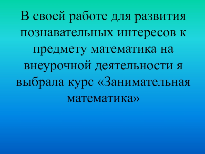Слайд 12В своей работе для развития познавательных интересов к предмету математика на