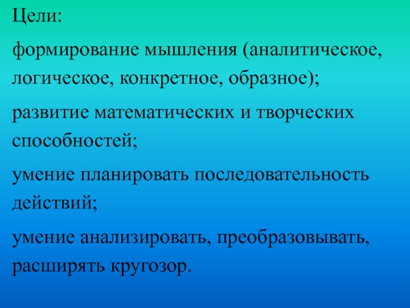 формирование мышления (аналитическое, логическое, конкретное, образное);