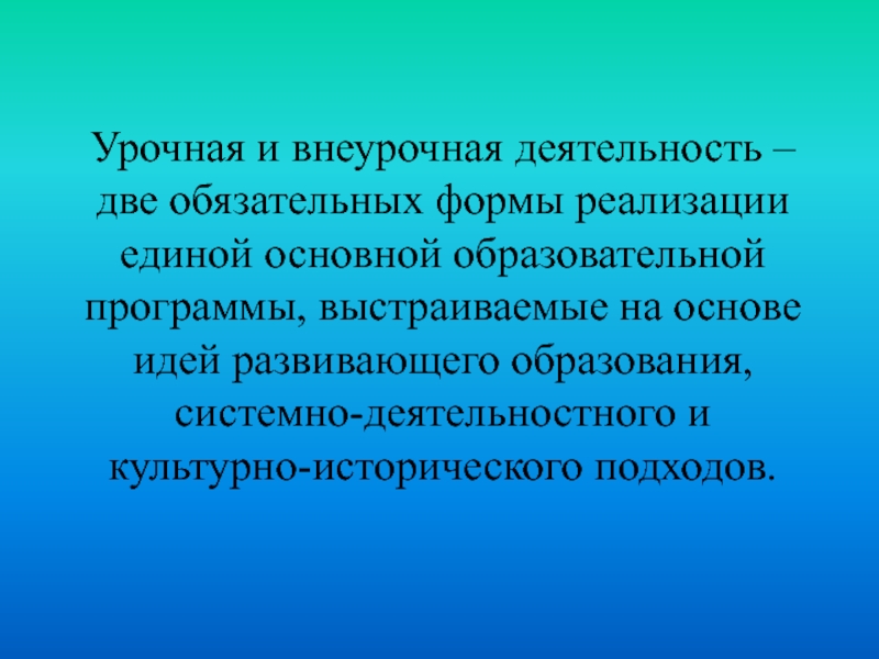 Слайд 7Урочная и внеурочная деятельность – две обязательных формы реализации единой основной