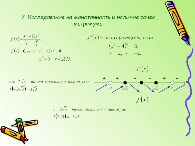 находить экстремумы, наибольшее наименьшее значение, монотонность функции