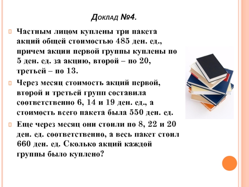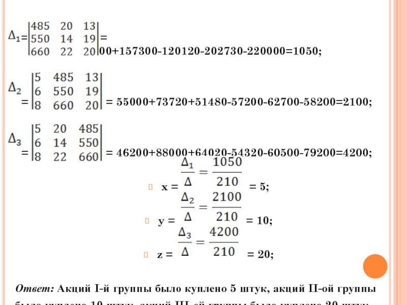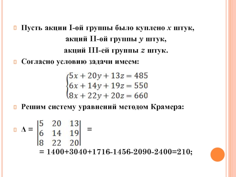 Слайд 22Пусть акции I-ой группы было куплено х штук,