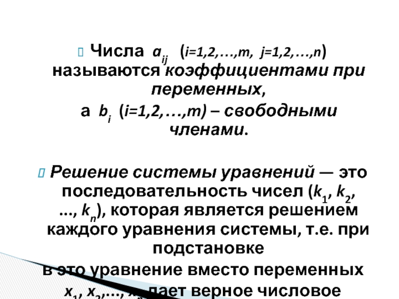 Слайд 5Числа aij (i=1,2,…,m, j=1,2,…,n) называются коэффициентами при переменных,