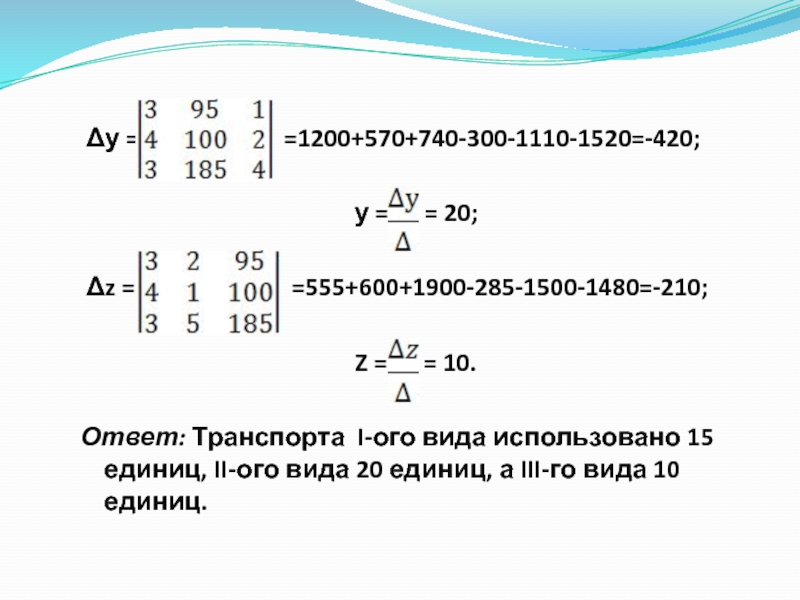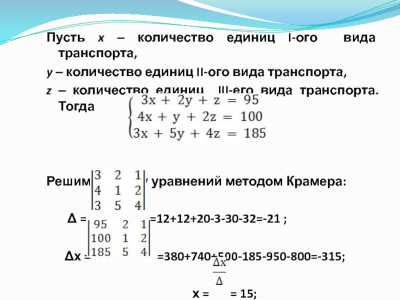 Слайд 16Пусть x ‒ количество единиц I-ого вида транспорта,
