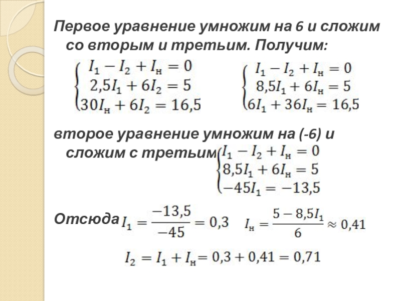 Слайд 14Первое уравнение умножим на 6 и сложим со вторым и третьим.