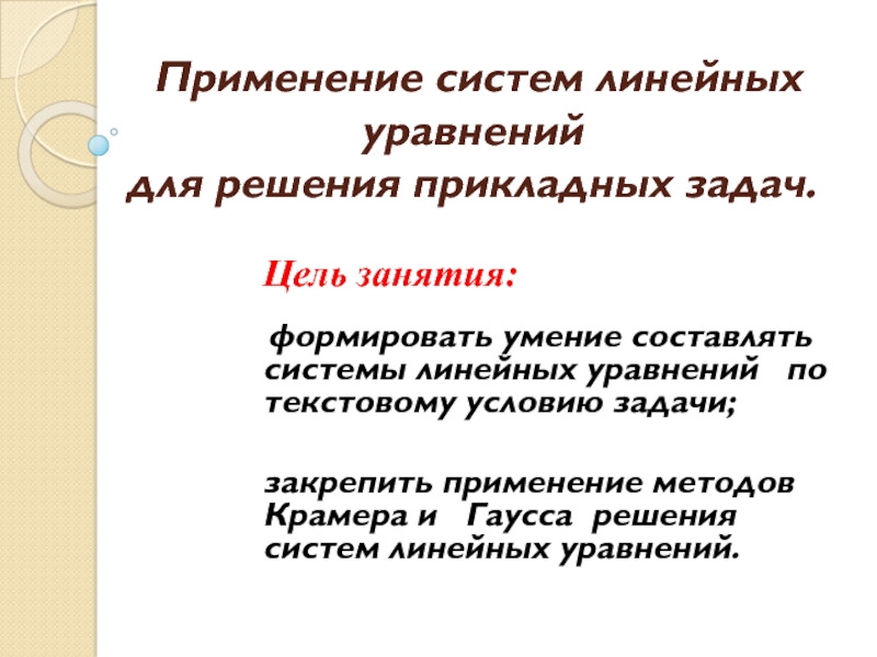 закрепить применение методов Крамера и Гаусса решения систем линейных уравнений.