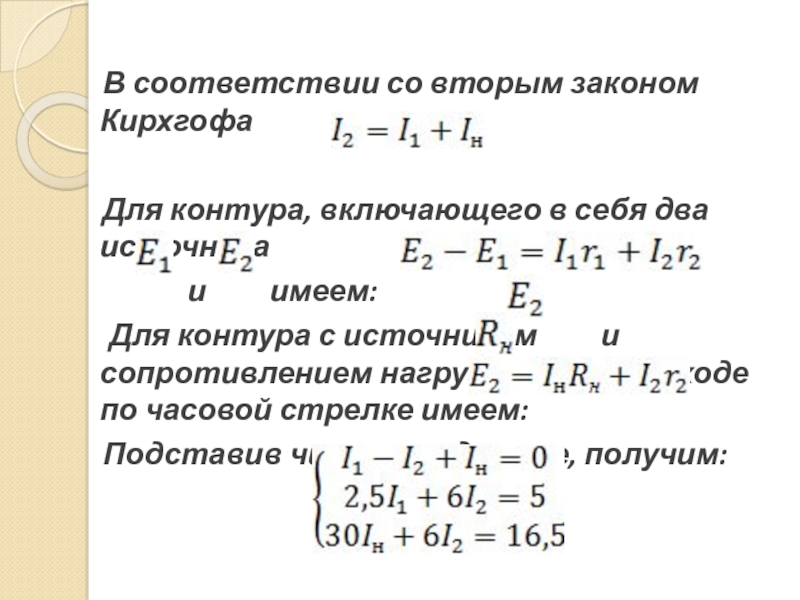 Для контура с источником и сопротивлением нагрузки при обходе по часовой стрелке имеем: