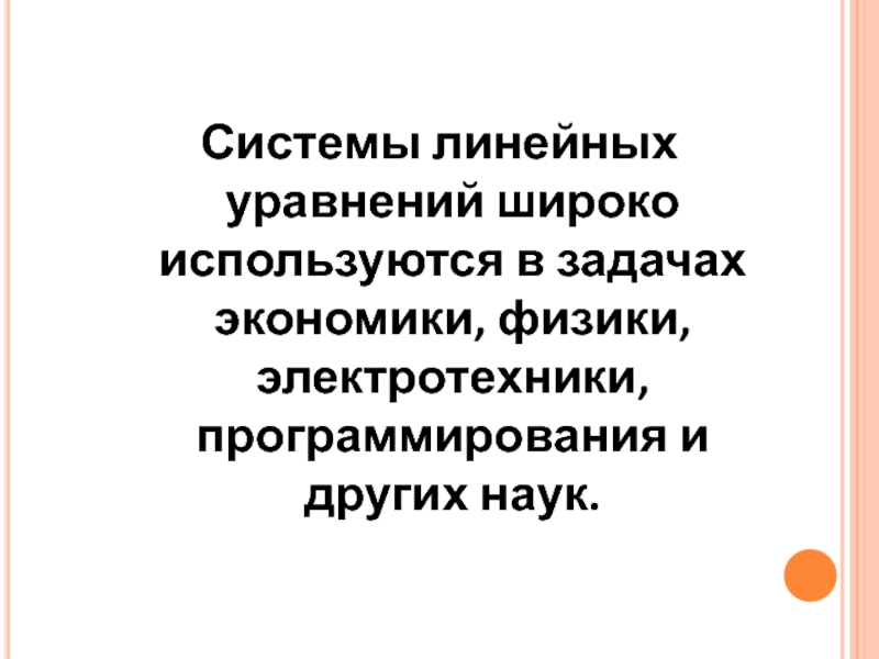 Слайд 3Системы линейных уравнений широко используются в задачах экономики, физики, электротехники, программирования