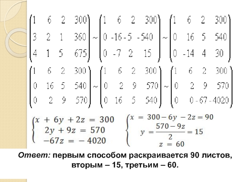 Слайд 20Ответ: первым способом раскраивается 90 листов,