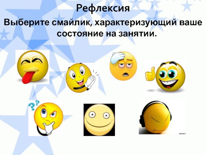 Выберите смайлик, характеризующий ваше состояние на занятии.