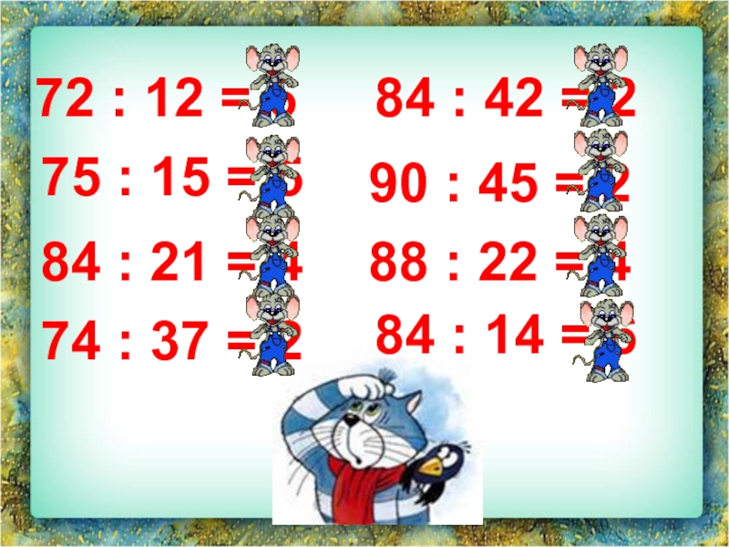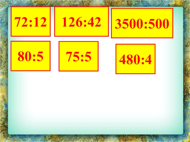 72 : 12 = 684 : 21 = 484 : 42 = 275 : 15 = 584