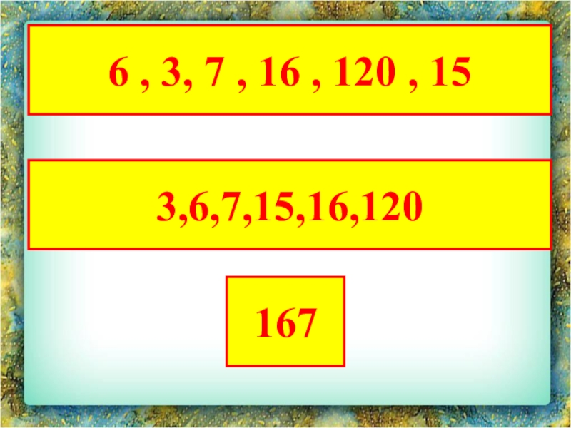 6 , 3, 7 , 16 , 120 , 153,6,7,15,16,120167