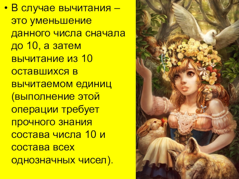 умение представить вычитаемое в виде суммы удобных слагаемых (одно из которых содержит столько единиц, сколько их содержится в разряде единиц уменьшаемого);
