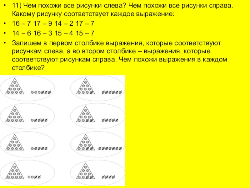 2) Что обозначают выражения, записанные под каждой картинкой?