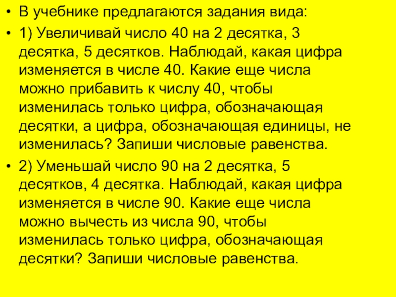 1) Увеличивай число 20 на 3 дес., на 5 дес., на 7 дес. Наблюдай! Какая цифра изменяется в числе 20?