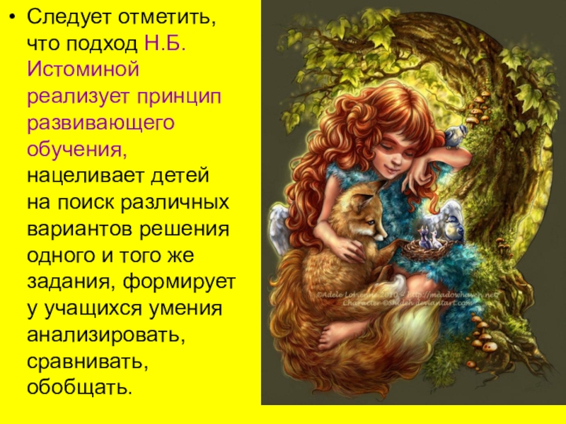 Слайд 89Следует отметить, что подход Н.Б.Истоминой реализует принцип развивающего обучения, нацеливает детей
